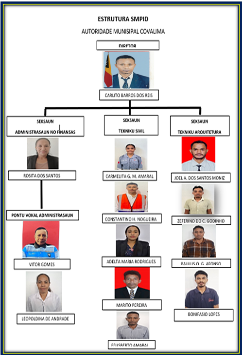 Distribuisaun forsa traballu iha SMPID Munisipál Covalima tuir knar no responsabilidade  iha ida-idak nia area hanesan iha tabela tuir mai: