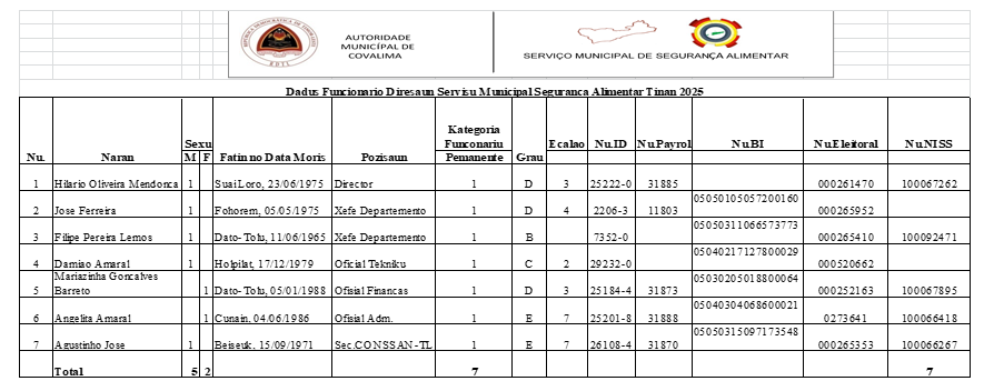 - Hanesan saseluk Director Servisu Municipal Seguransa Alimentar ninian.