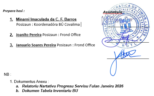 Iha fulan Janeiru tinan 2026, Balkaun Úniku Munisípiu Covalima kontinua hala’o nia knaar ho objetivu atu fornese servisu públiku ne’ebé efisiente, transparente no asesível ba komunidade iha munisípiu Covalima. Nudar fatin integradu ba servisu governamentál sira, Balkaun Úniku sai hanesan ponte entre governu no komunidade hodi fasilita prosesu dokumentu ofisiál no informasaun administrativu.