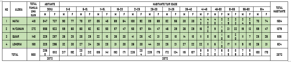 | 4. | Uma Dato Bere bein | Matai | Matai |