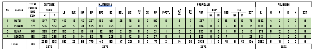 | Nu | Naran Uma Lisan | Suku | Aldeia |