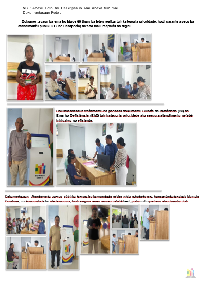 Dokumentasaun ba ema ho idade 60 tinan ba leten realiza tuir kategoria prioridade, hodi garante asesu ba atendimentu públiku