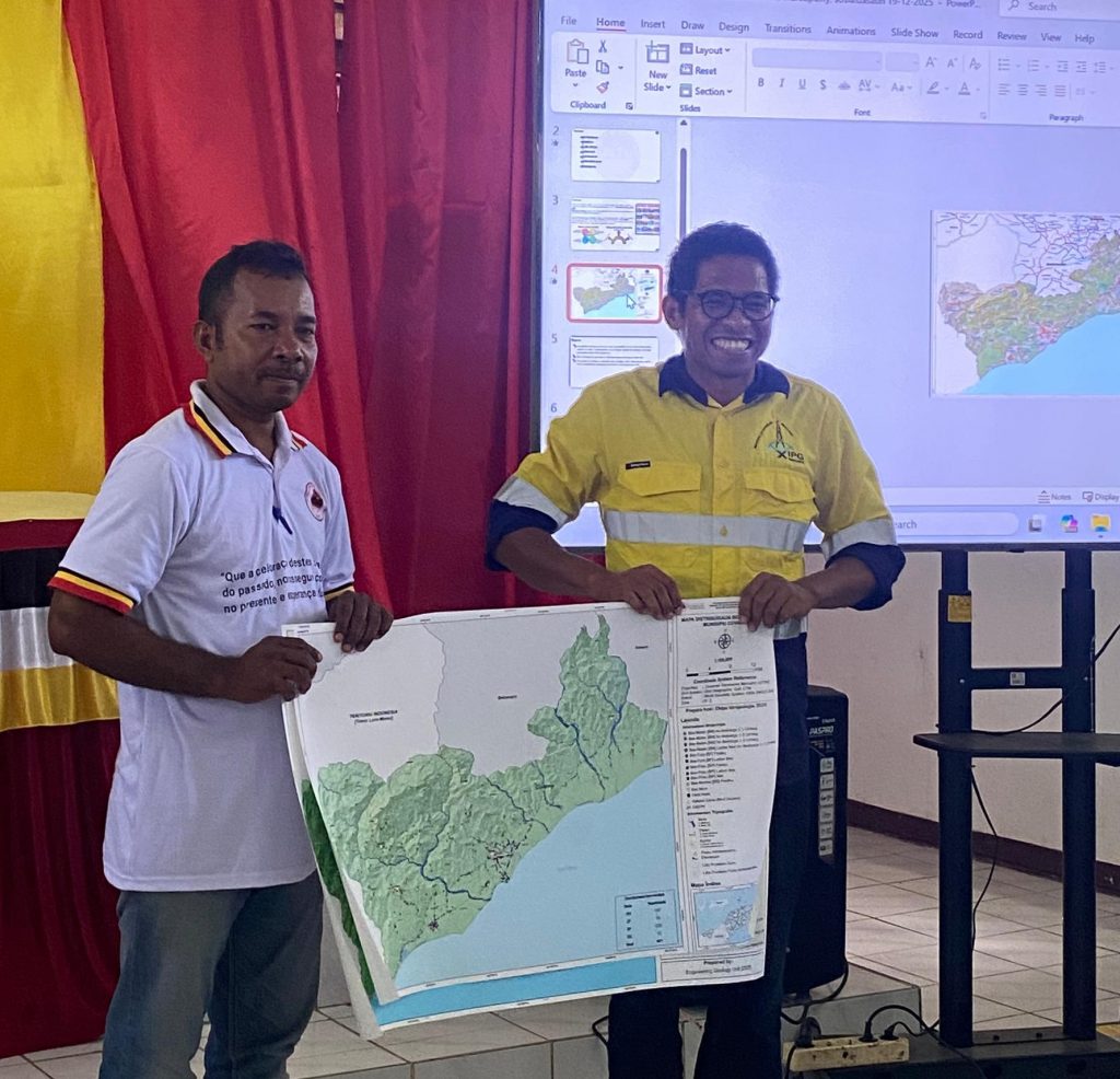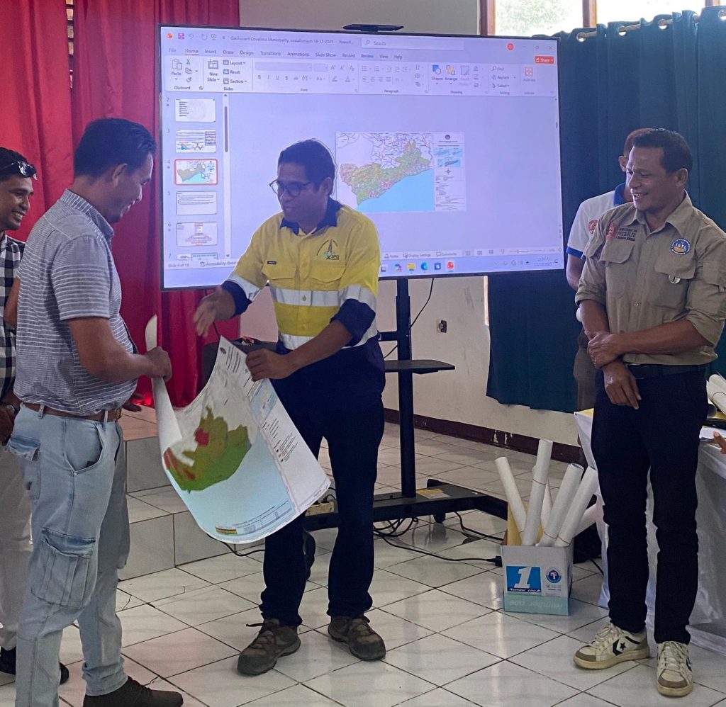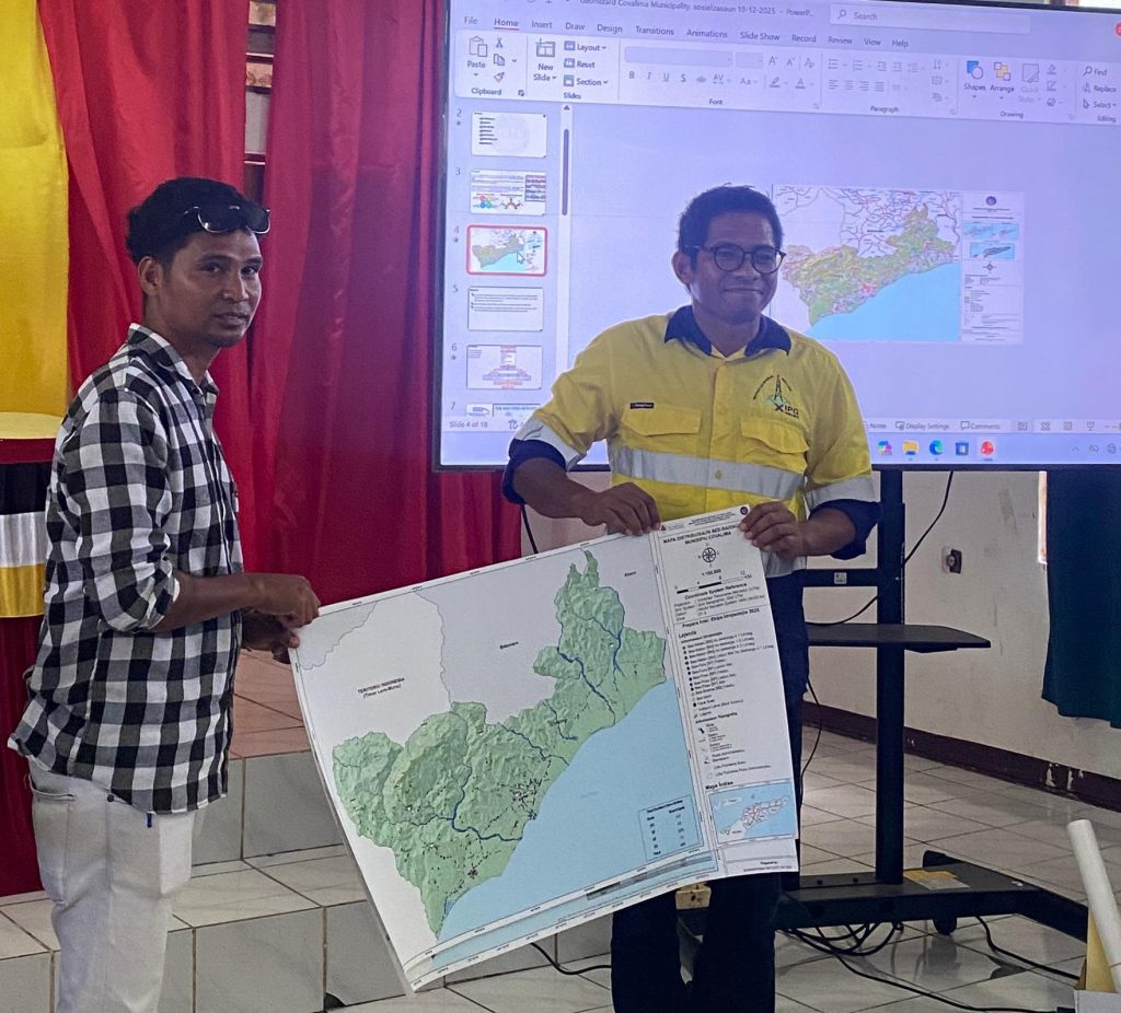 Covalima, 17 Dezembru 2025 – Instituto de Geociêcias de Timor Leste dezamina mapamentu risku ba dezastre naturais, ho objetivu atu partilla informasaun kona-ba estudu jeosientifiku ba area sira ne’ebé poténsia maka’as ba risku inundasaun/be’e sa’e, erozaun kosteira no rai-halai, tuir mapa preliminária ne’ebé IGTL produz ona no mos halo avaliasaun ba area hirak ne’ebé hetan estraga husi risku jeolojiku sira. Aumesmu tempo fó solusaun atu mitiga no minimiza risku jeolojiku ne’ebé maka akontese, nune’e mós fo possibilidade protesaun ba area hirak ne’ebé seida’uk kona risku iha Munisipiu Covalima, atividade ida ne’e prezede husi Secretário Munisipal dos Assuntos Sociais e as Organizaões no mos Partisipa husi Administrador Postu Administrativo husi Postu 7  ho Membru Komisaun Jestaun Dezastre Munisipal (KJDM) sira hotu.