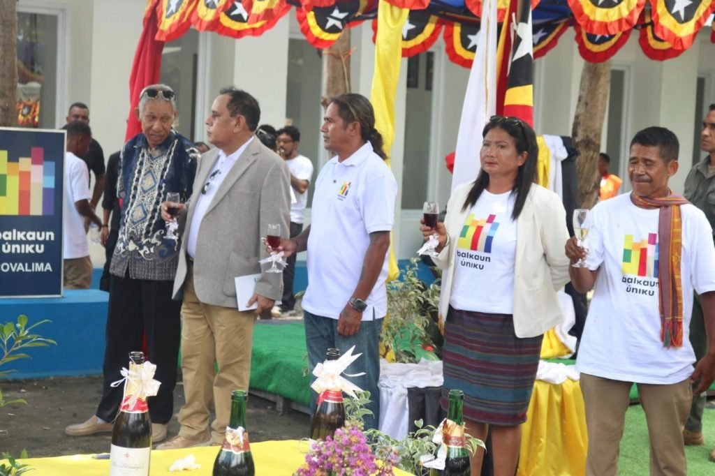 Covalima,11 Dezembru 2025 Suacia. Minístru Ministériu Administrasaun Estatal,𝐓𝐨𝐦á𝐬́ d𝐨 𝐑𝐨𝐬𝐚𝐫𝐢𝐨́ 𝐂𝐚𝐛𝐫𝐚𝐥, hamutuk ho Sua Excia. Vise-Minístru ba Fortalesimentu Institusionál, Paulo Manuel da S. dos Remédios, Sua Excia SEDL, Mateus W. dos Santos Tallo, Sua Excia SEATOU, Germano Santa Brites Dias, Dirétora DJSMAL hamutuk ho Reprezentante UNDP, Quinta feira ohin, halo lansamentu ba funsionámentu Balkaun Úniku iha Munisípiu Covalima Postu Administrativu Suai Suku Debos Aldeia Tabaco Lot, (Bairo Rompe).