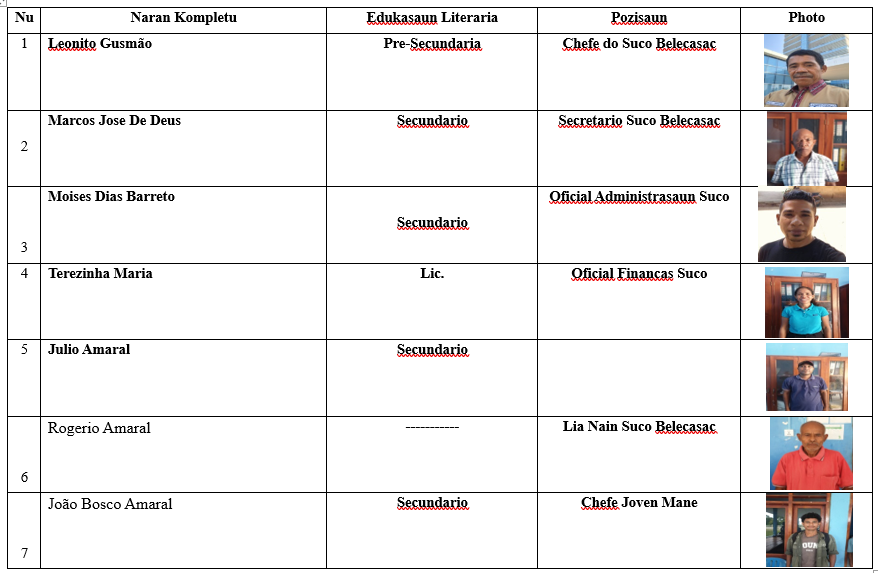 • Suku Belecasac  iha Aldeia 7 Mak Hanesan: