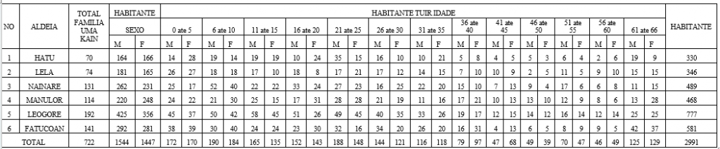 | NU. | ALDEIA | TOTAL UMA KAIN | TOTAL | TOTAL POPULASAUN | |