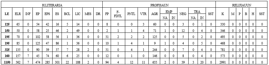 | NU. | NARAN KOMPLETU | Sexu | DATA MORIS | SUKU | ALDEIA | OBS | |