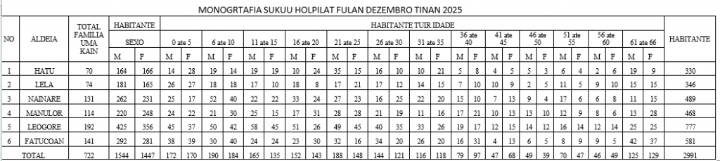Aldeia hira : (6) Hatu,Lela,Nainare,Manulor,Leogore,no Fatucoan