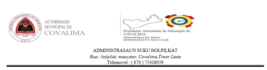 - Nudar ezekutor ba asunto administrative suku nian (korespondensia,arkivamentu,jestaun patrimonio,no prepara relatoriu sira ho aktividade suku nian.