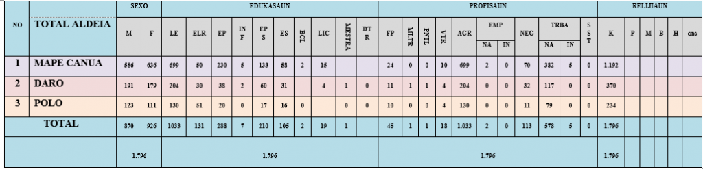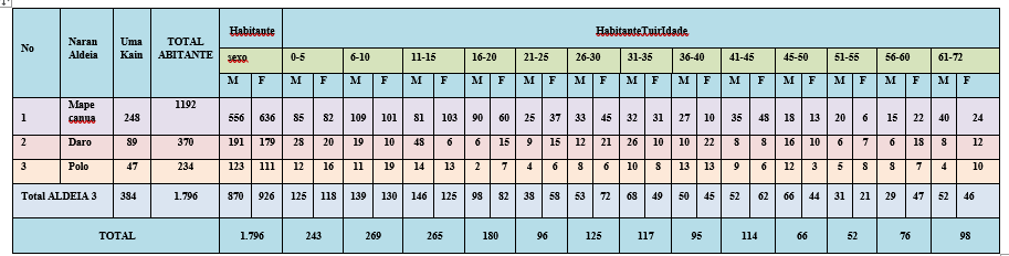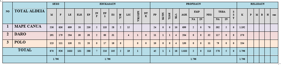 Suku  Mape kompostu husi aldeia 3 mak hanesan tuir mai ne’e :