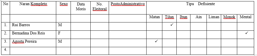 1. Rekoilia dadus monografia , demografia ,natalitas,mortalitas,defisiente, vuneravel , no kualker aktividade por mes hodi submete mai iha suku