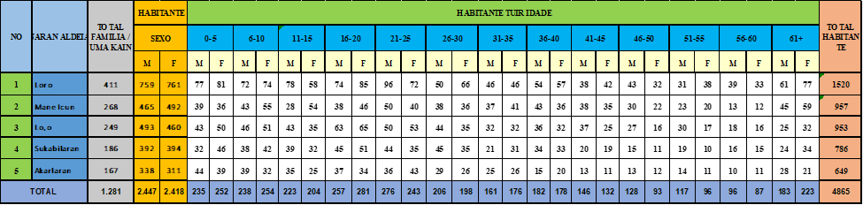 • Trata dadus populasaun ( Moris, Mate no muda fatin )