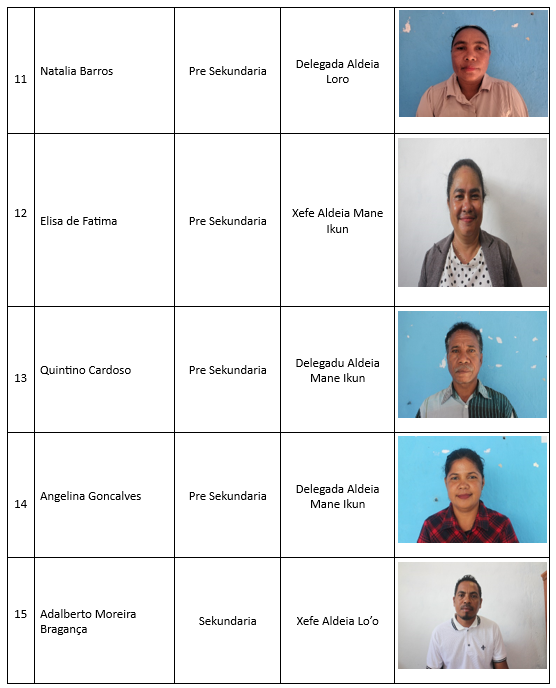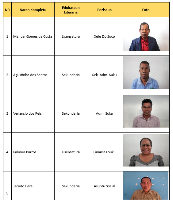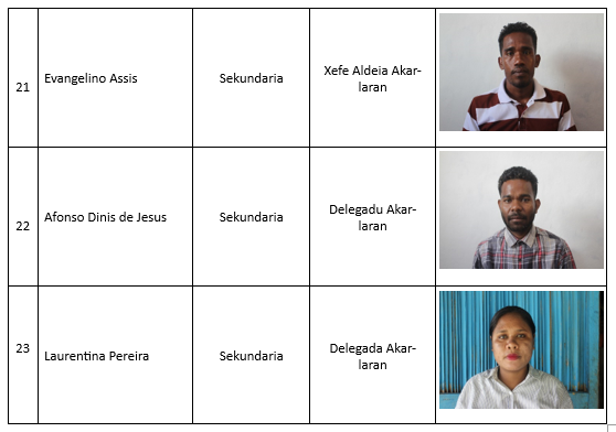 • Kria komunidade suku ida ne’ebé moris ho damen, prosperu, justu no independente iha dezenvolvimentu.
