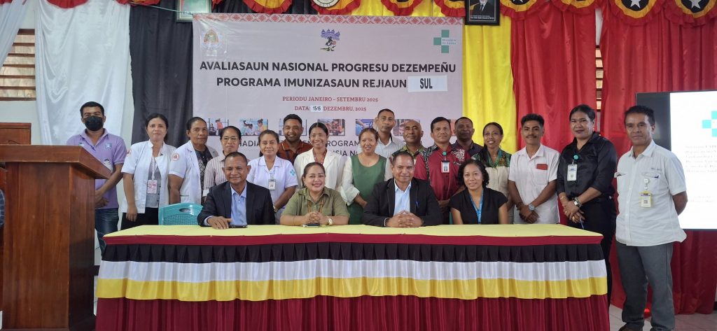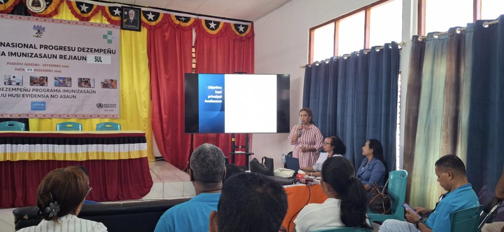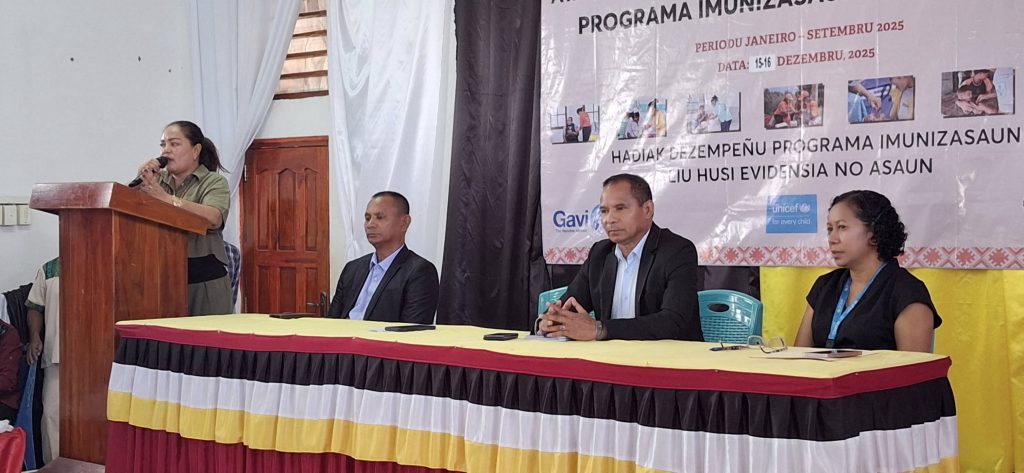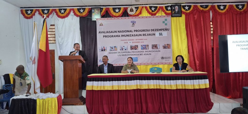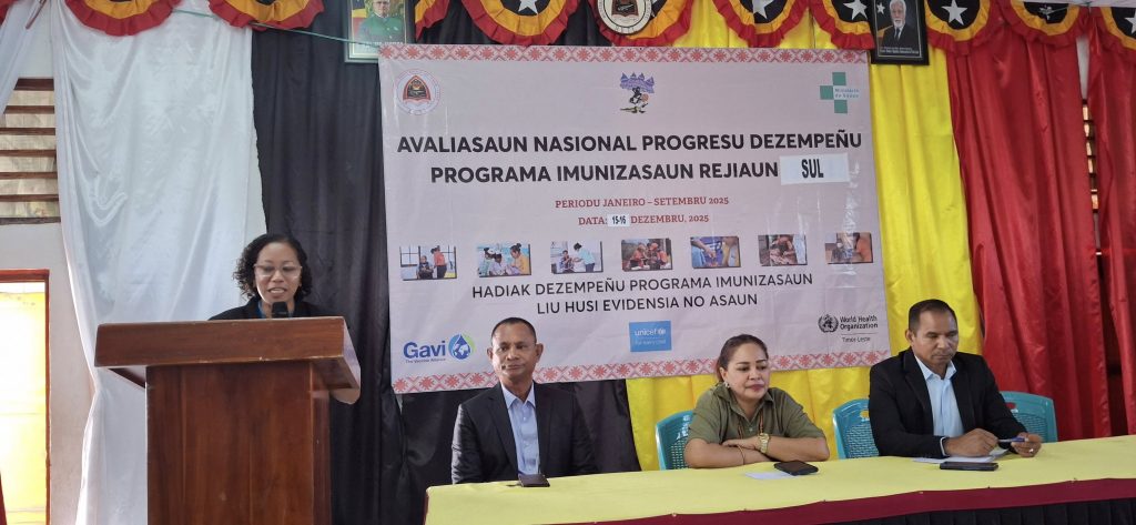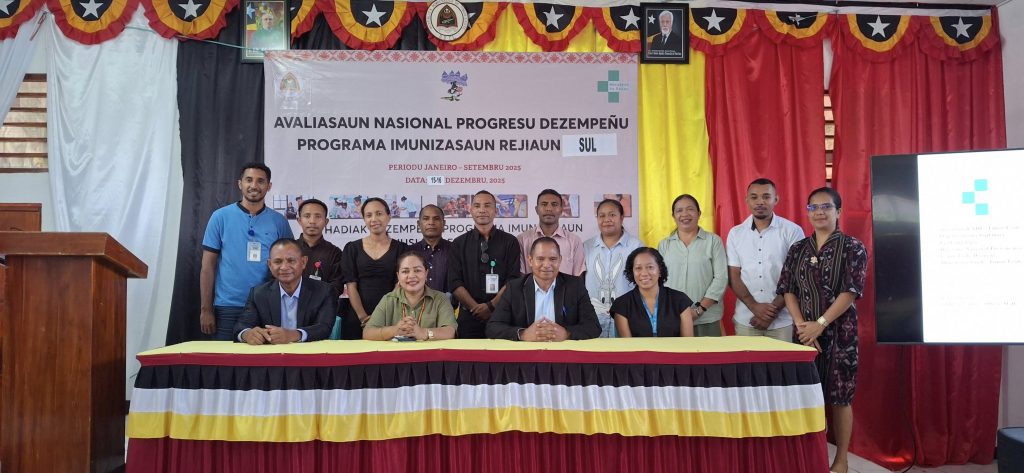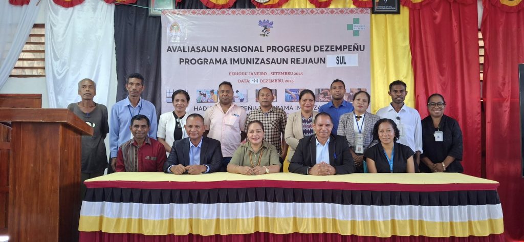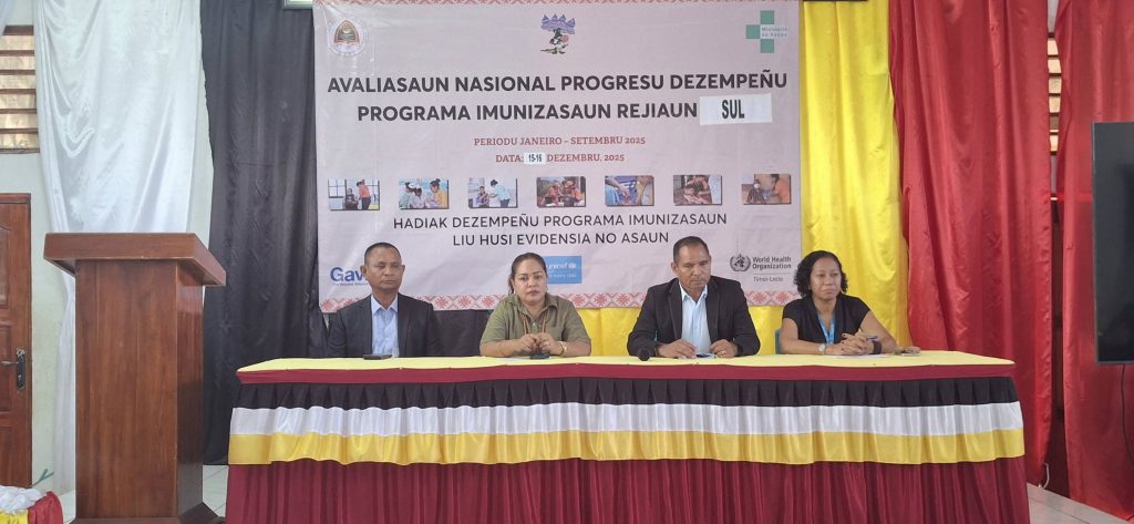 Husi Diresaun Nasional Saúde Materno Infantil (DNSMI), Departamento Programa Imunizasaun (EPI), hala’o Avaliasaun Nasional Progresu Dezempeñu Programa Imunizasaun rejiaun sul durante loron rua, hahú husi loron Segunda feira, dia 15 Dezembru to’o dia 16 Dezembru tinan 2025 ne’ebé realiza iha salaun Administrasaun Munispíu Covalima. Atividade ida ne’e ho ninia tema “Hadiak Dezempeñu Programa Imunizasaun liu husi Evidénsia no Asaun.” Avaliasaun ida ne’e nia objetivu mak atu avalia progresu, identifika desafiu sira no hametin estratéjia implementasaun programa imunizasaun iha nível nasionál no munisípiu.