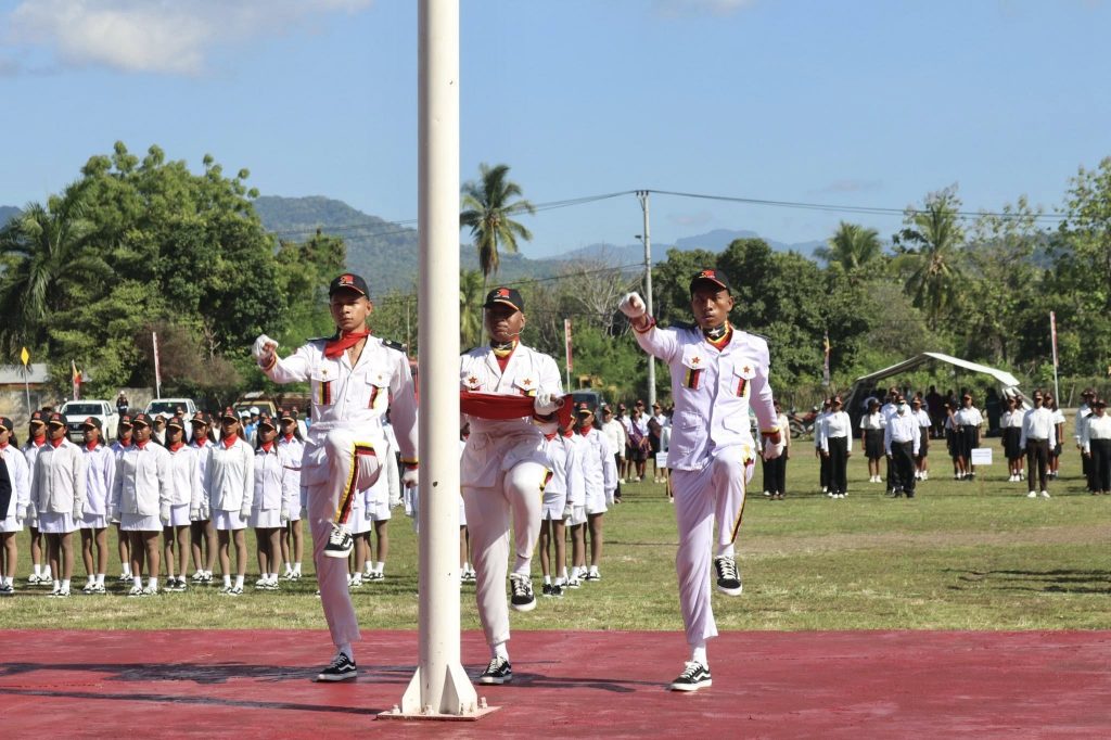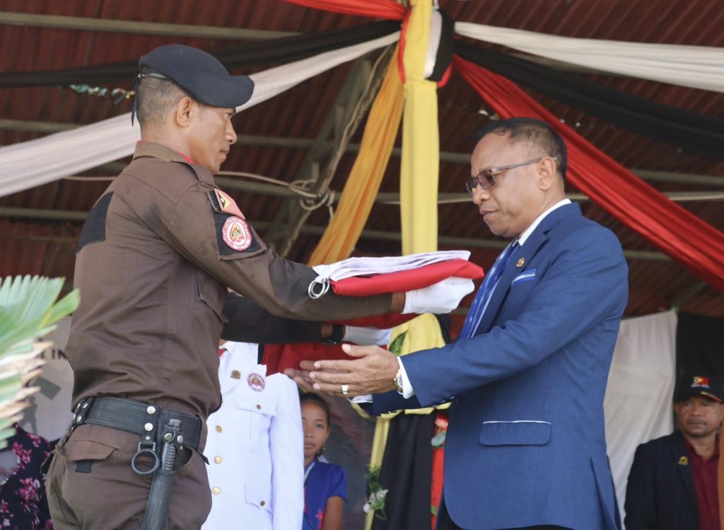 Covalima, 28 Novembro 2025, Repúblika Demokratika Timor-Leste (RDTL) komemora Aniversáriu Istóriku Proklamasaun Unilaterál Independénsia 28/11/1975-28/11/2025, ne’ebé selebra ba dala-50 ho serimónia Isár Bandeira Nasionál solene ho tema “𝐐𝐮𝐞 𝐚 𝐜𝐞𝐥𝐞𝐛𝐫𝐚𝐜̧𝐚̃𝐨 𝐝𝐞𝐬𝐭𝐞𝐬 𝟓𝟎 𝐚𝐧𝐨𝐬, 𝐝𝐨 𝐩𝐚𝐬𝐬𝐚𝐝𝐨, 𝐧𝐨𝐬 𝐚𝐬𝐬𝐞𝐠𝐮𝐫𝐞 𝐜𝐨𝐧𝐟𝐢𝐚𝐧𝐜̧𝐚 𝐧𝐨 𝐩𝐫𝐞𝐬𝐞𝐧𝐭𝐞 𝐞 𝐞𝐬𝐩𝐞𝐫𝐚𝐧𝐜̧𝐚 𝐧𝐨 𝐟𝐮𝐭𝐮𝐫𝐨”.